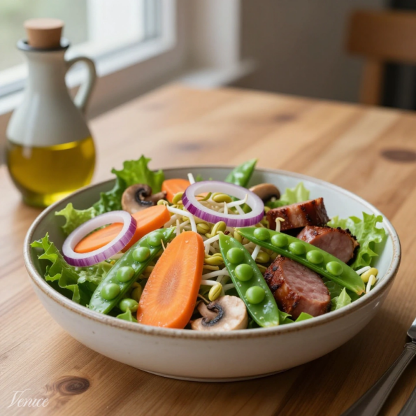 wer mag kann die Kaiserschoten auch noch dritteln, meiner Meinung werden die besser gar und entfalten mehr Geschmack
