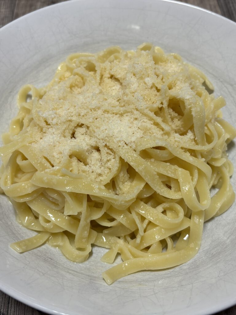 1. Die Butter zu den abgeschöpften Nudeln geben, umrühren und immer eine Schöpfkelle voll Nudelwasser unterrühren, bis sich eine cremige Konsistenz ergibt.